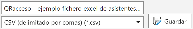 ¿Cómo puedo crear un excel de asistentes para la app QRacceso? ¿dónde puedo conseguir un ejemplo de Excel/CSV para QRacceso?